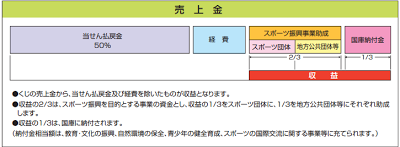 具体的には、242億円の利益の内、181億円をスポーツ振興に使い、81億円を国庫に納付している。